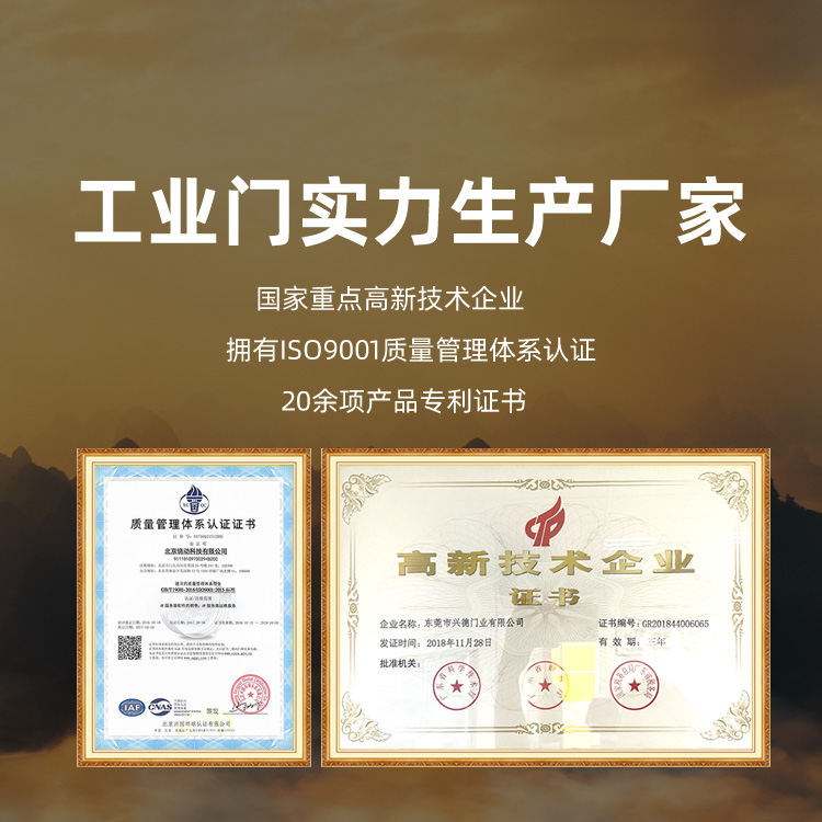 東莞市興德門業(yè)有限公司是以生產(chǎn)滾筒式快速軟簾門、快速卷簾門、快速門、快速自動(dòng)門、高速門、高速卷門、高速卷 簾門、自動(dòng)門、快速堆積門、金屬自由門、工業(yè)卷簾門、滑升門、pvc透明軟門簾、磁吸門簾、推拉磁鐵門簾、透明軟板、防塵防靜電工程等方面的開(kāi)發(fā)、設(shè)計(jì)與生產(chǎn)、銷售于一體的高新技術(shù)企業(yè),公司實(shí)力雄厚,專 注于產(chǎn)品十年余載,產(chǎn)品暢銷各地。